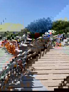 Refreshed by tasty snacks and enjoyable beverages riding was resumed as the day warmed up. Descending to Cromhall, undulations recommenced with Leyhill and Damery but a more even gradient resumed for the passage to Ham, Berkeley Purton and Longaston Lane. There our leader took another out-of-character turn, opting for a canal-side spell to Frampton before more predictable and familiar lanes to The Beacon at Haresfield for a warm welcome and liquid