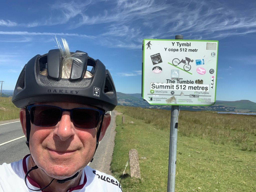 After some confusion with transport, 4 riders left Monmouth on our motor assisted ride. The route from Monmouth over to Abergavenny with its undulations and views over to Sugar Loaf was excellent and really enjoyable. However, the main reason for the ride was the Tumble, and here the Vice Captain fell victim to the intense heat, just as he did on Alpe d’Huez some years ago, and was forced to stop shortly after the cattle grid, eventually cresting the summit in last place. However, Ed-spresso knew exactly the right medicine, and swiftly procured a “Mr Whippy”.