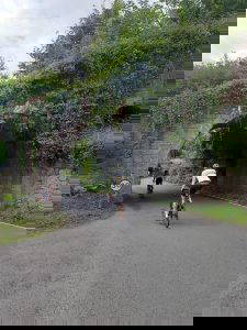 The ten riders were keen to get started, and it was a fast pace down the A40 to Birdwood. It all settled down in the lanes, caping up at Soudley and removing them again before Parkend. Descending “The Rocks” near Clearwell was interesting, but disc brakes meant that we could probably have stopped if necessary. A bit of navigational confusion finding the bridge in Redbrook was overcome with the assistance of a very helpful pedestrian. I had warned the riders that the climb out of Redbrook was tough, but I had forgotton just how tough it was. With me being called various names, we were all grateful to reach Pen-Twyn and descend to coffee and cake at The Red Door Deli.