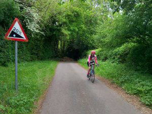 The inaugural “intermediate” ride attracted an ideal group size of six riders. An early rebellion from the timekeeper who wanted to experience the suffering of those she waved off on the U7B meant that we took the main road out of Maisemore, and thus were temporarily ahead of the tempo ride, although this was rectified around Highleadon, and we settled down on a reasonably flat parcours to Much Marcle. Avoiding Cider Mill Hill took us along the foot of the Marcle ridge with some steep pitches, but thankfully not the incredibly steep pitch near Putley, despite it being promised.