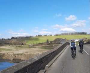 Two of us ordered carrot cake, and the waitress decided to cut the last piece, which was probably three portions, in half, resulting in an excellently large piece of cake. After refreshments, the hills started in earnest, with two long climbs, either side of the Redbrook Bridge. We were all pleased to reach the familiar territory of Bream. Tired legs were in evidence climbing out of Parkend, and at Flaxley, we had a most unusual mechanical failure. A bidon split, and I doubt it was due to UV degradation from our recent trip to the mis-named Costa Del Sol!