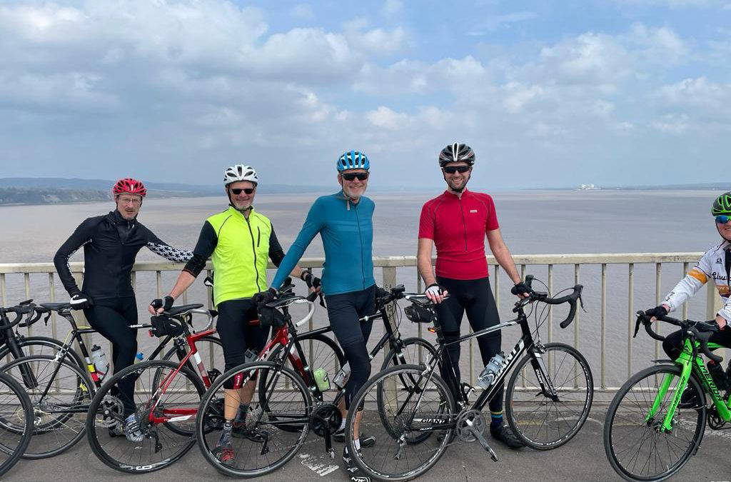 The sun briefly came out at coffee, encouraging the removal of some layers for the delightful climb up “St Arvan’s Wall”. After crossing the Severn Bridge, we picked up a tail-wind along the lanes to Berkeley where we made a second refreshment stop. Just as we approached The Ship, one rider declared his saddle was slipping down, and he would have to stop. I struggle to believe it was coincidence!