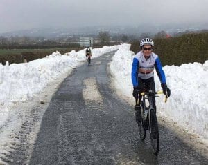 Although the sports ride and Tyndale ride were cancelled as a precaution after recent snow the President led four brave souls from the Square for the promised “Mystery” B ride. Croome Park being on the calendar, we made a brave effort to get there, having no trouble through the outskirts of Cheltenham and on to Bishop’s Cleeve. Woolston Lane was a different matter; like all the north-south oriented lanes it had caught the drifting snow from last week’s easterly wins and we resorted to the man road.